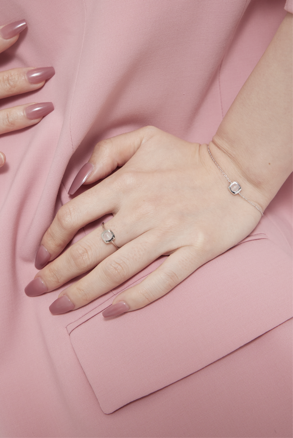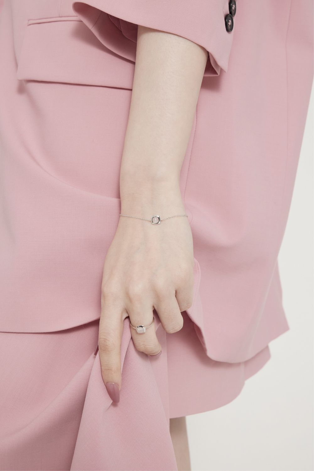 - To prevent tarnish of the product, avoid contact with water, lotion, perfume, etc. as much as possible, and when not being worn, gently wipe it with a silver polishing cloth and store it individually in a poly bag.