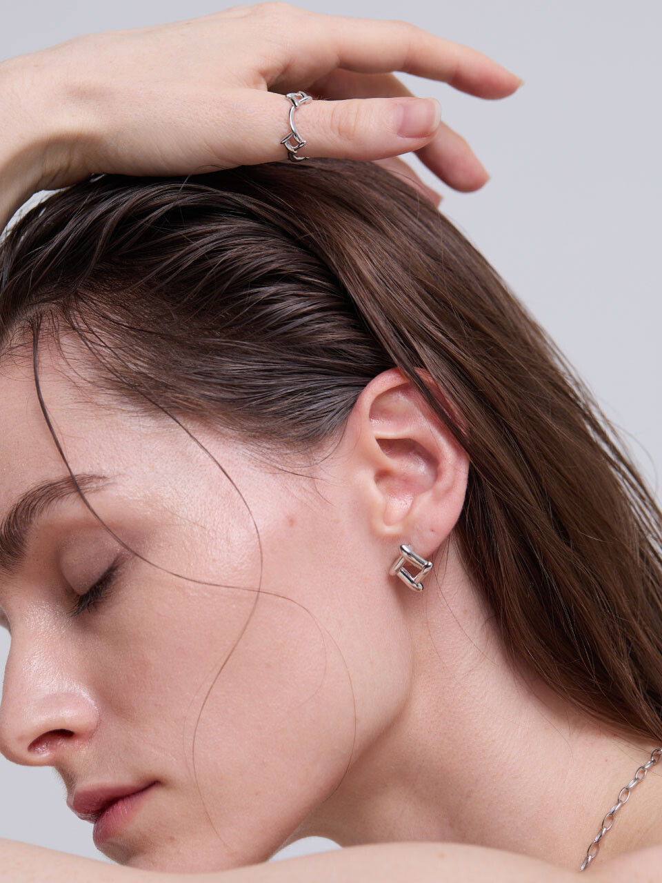 - To prevent tarnish of the product, avoid contact with water, lotion, perfume, etc. as much as possible, and when not being worn, gently wipe it with a silver polishing cloth and store it individually in a poly bag.