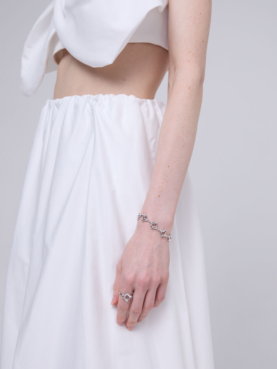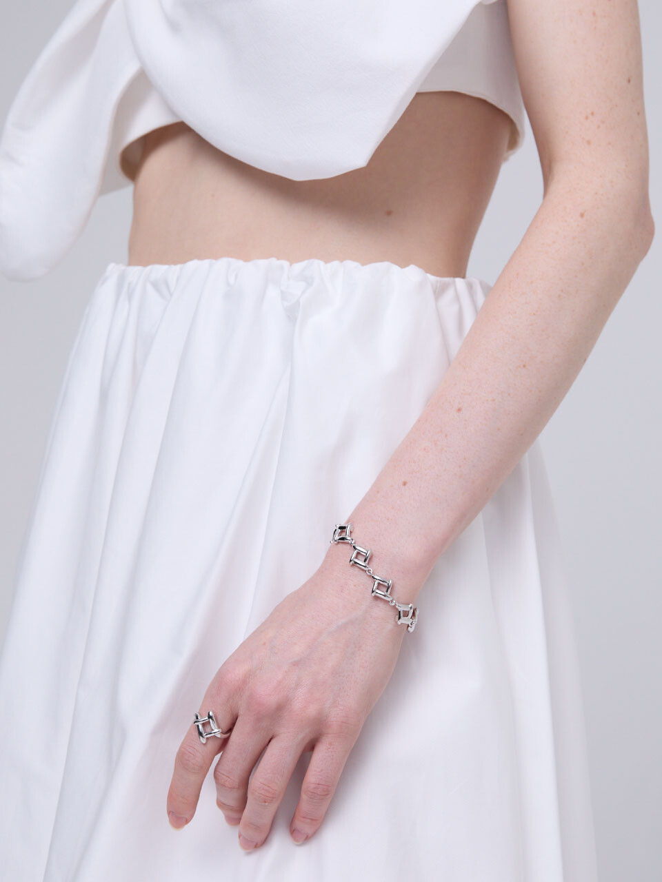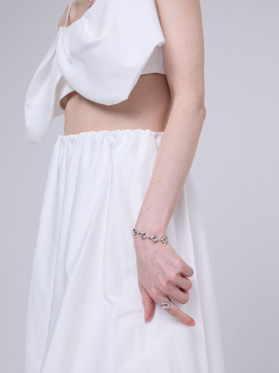 - To prevent tarnish of the product, avoid contact with water, lotion, perfume, etc. as much as possible, and when not being worn, gently wipe it with a silver polishing cloth and store it individually in a poly bag.