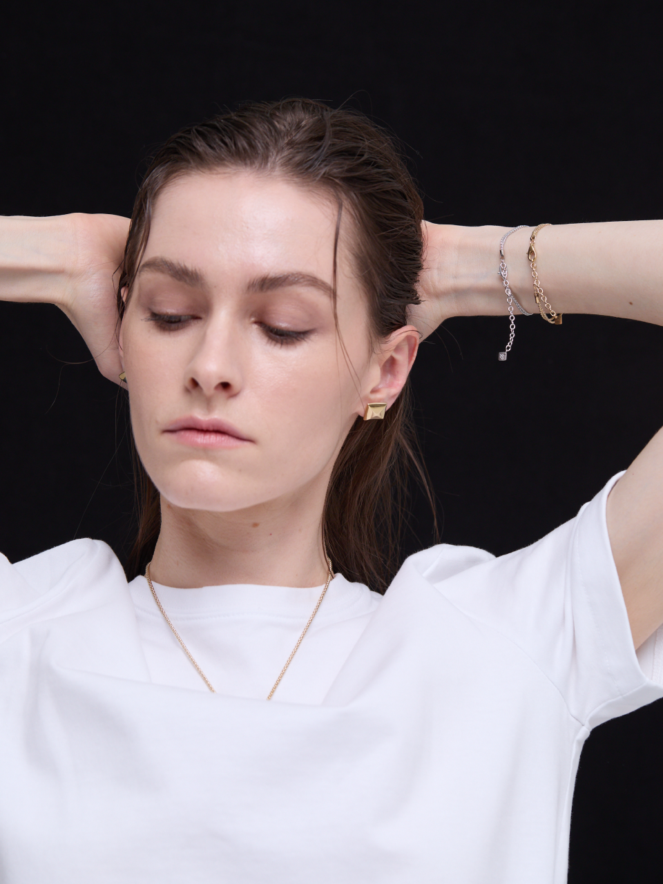 - To prevent tarnish of the product, avoid contact with water, lotion, perfume, etc. as much as possible, and when not being worn, gently wipe it with a silver polishing cloth and store it individually in a poly bag.