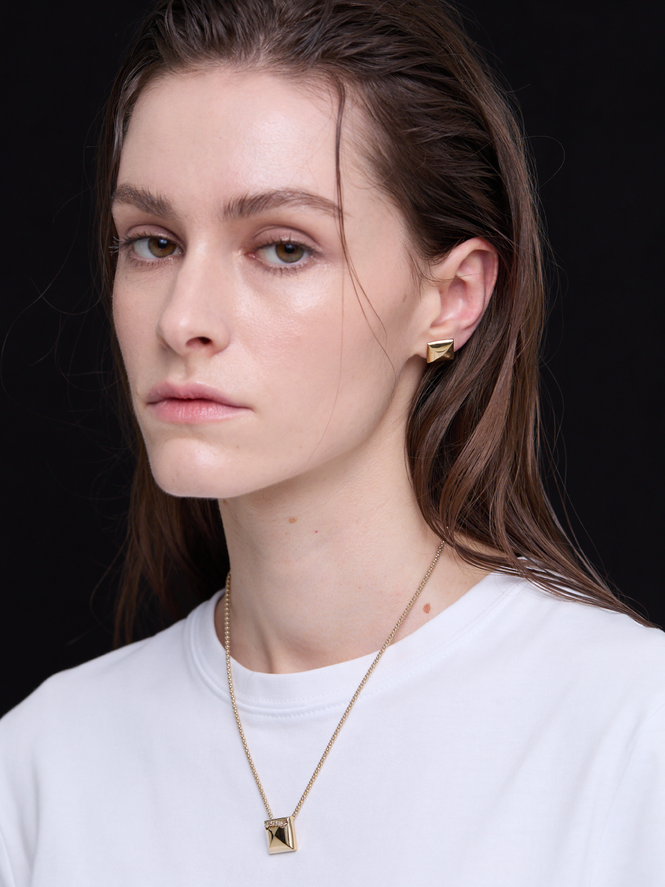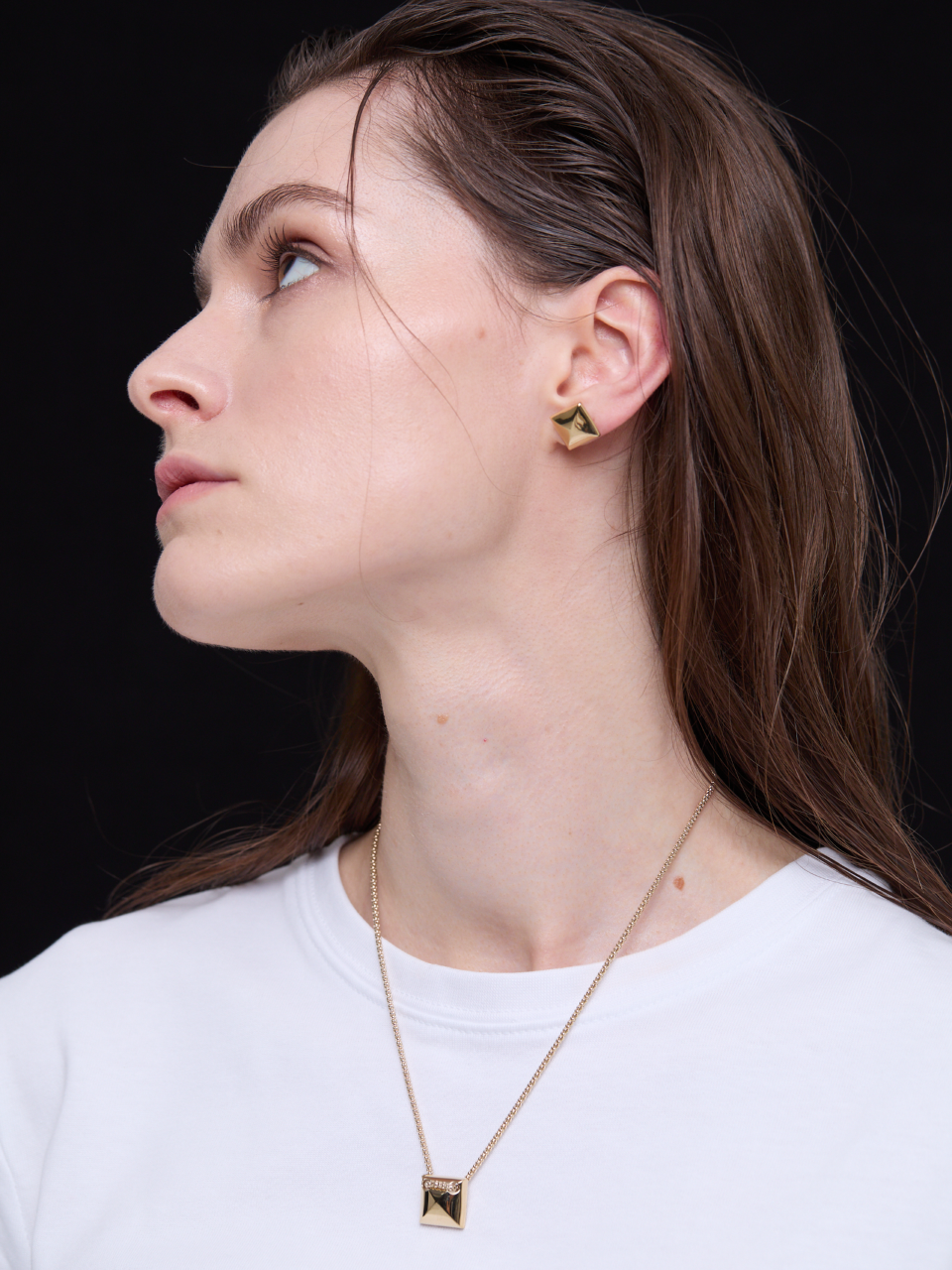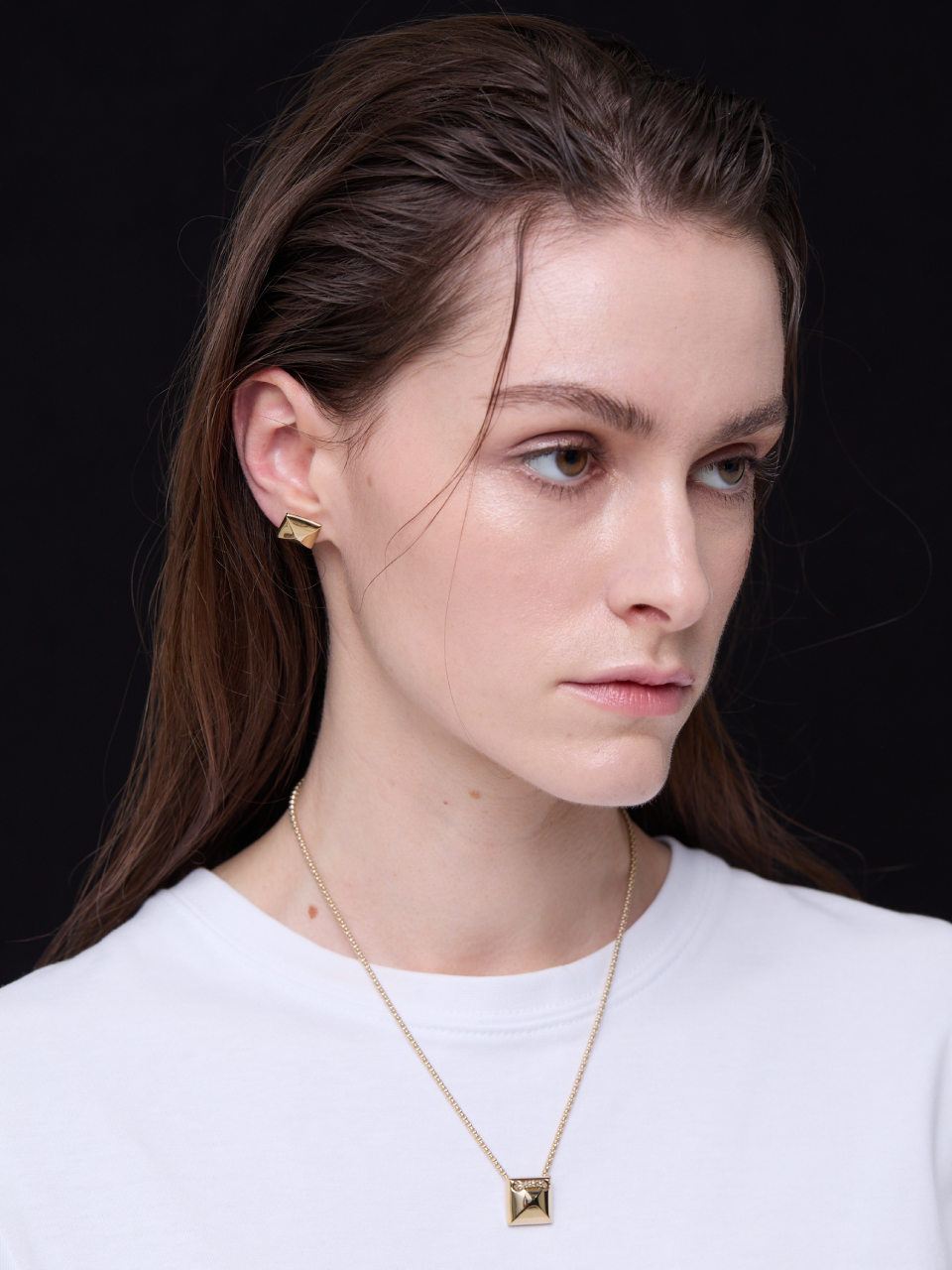 Pyramid Bold Stud Earrings (Yellow Gold)