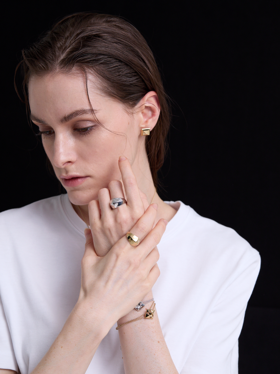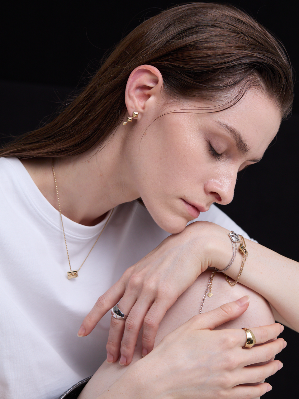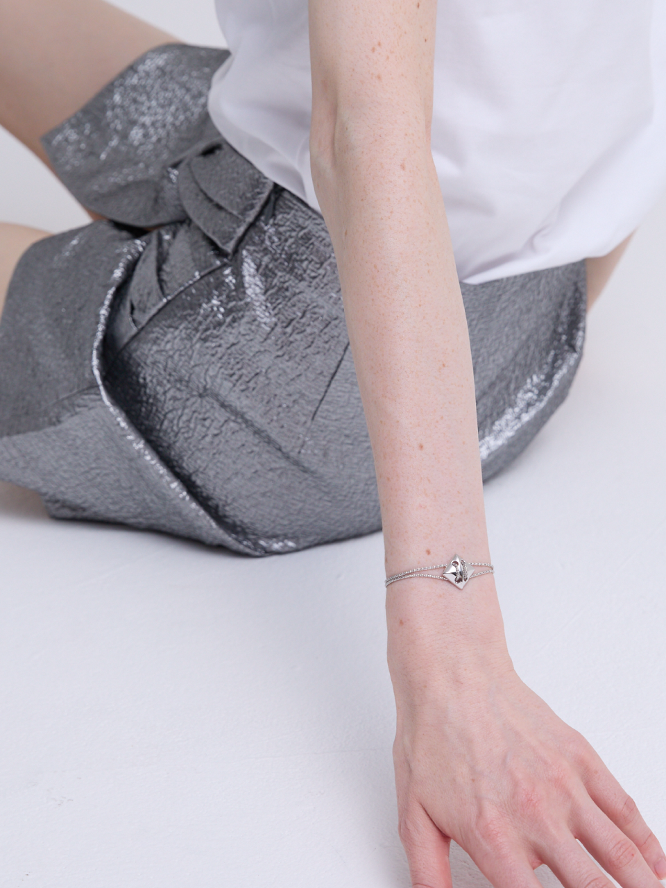 - To prevent tarnish of the product, avoid contact with water, lotion, perfume, etc. as much as possible, and when not being worn, gently wipe it with a silver polishing cloth and store it individually in a poly bag.