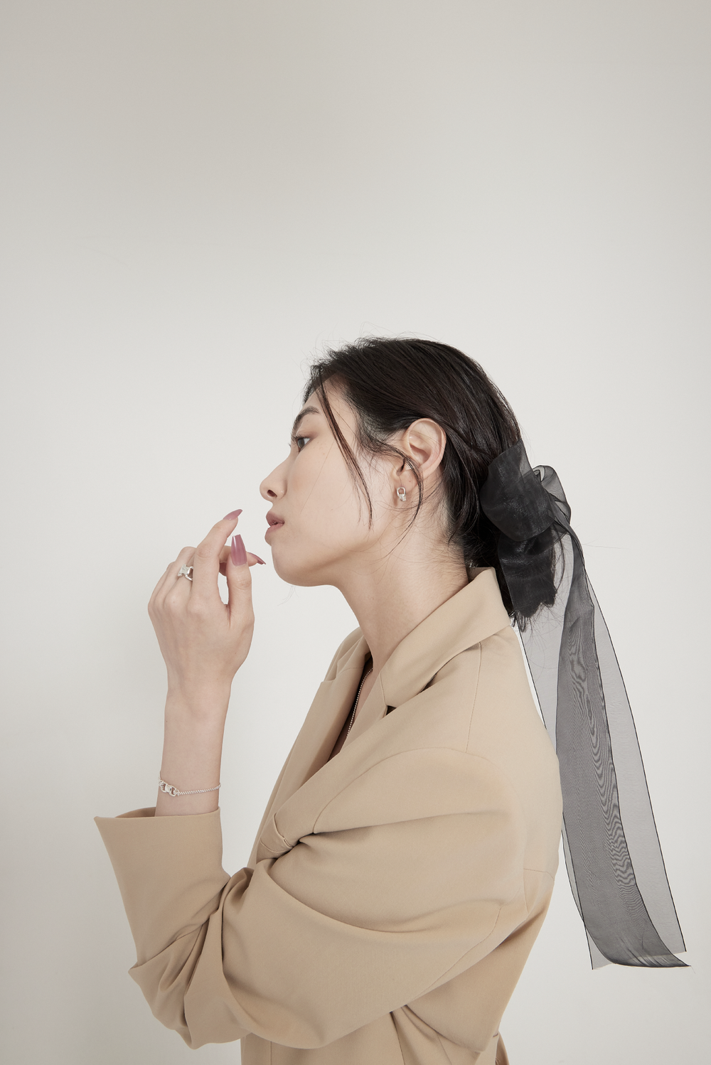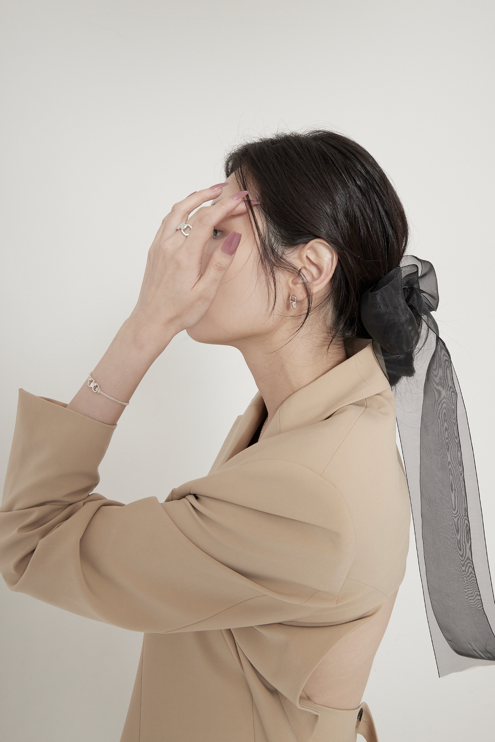 - To prevent tarnish of the product, avoid contact with water, lotion, perfume, etc. as much as possible, and when not being worn, gently wipe it with a silver polishing cloth and store it individually in a poly bag.