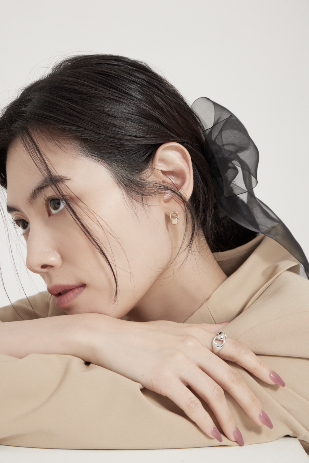 - To prevent tarnish of the product, avoid contact with water, lotion, perfume, etc. as much as possible, and when not being worn, gently wipe it with a silver polishing cloth and store it individually in a poly bag.