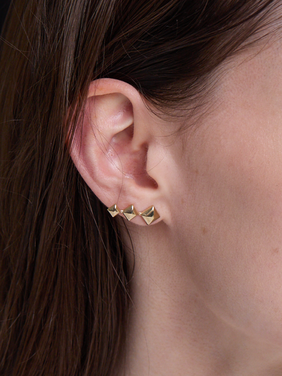 Triple Pyramid Stud Earrings (Gold)