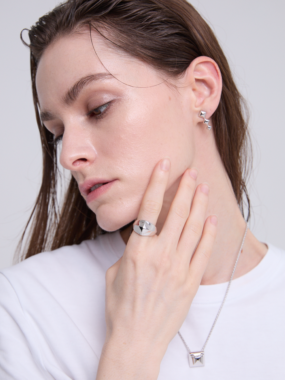 - To prevent tarnish of the product, avoid contact with water, lotion, perfume, etc. as much as possible, and when not being worn, gently wipe it with a silver polishing cloth and store it individually in a poly bag.